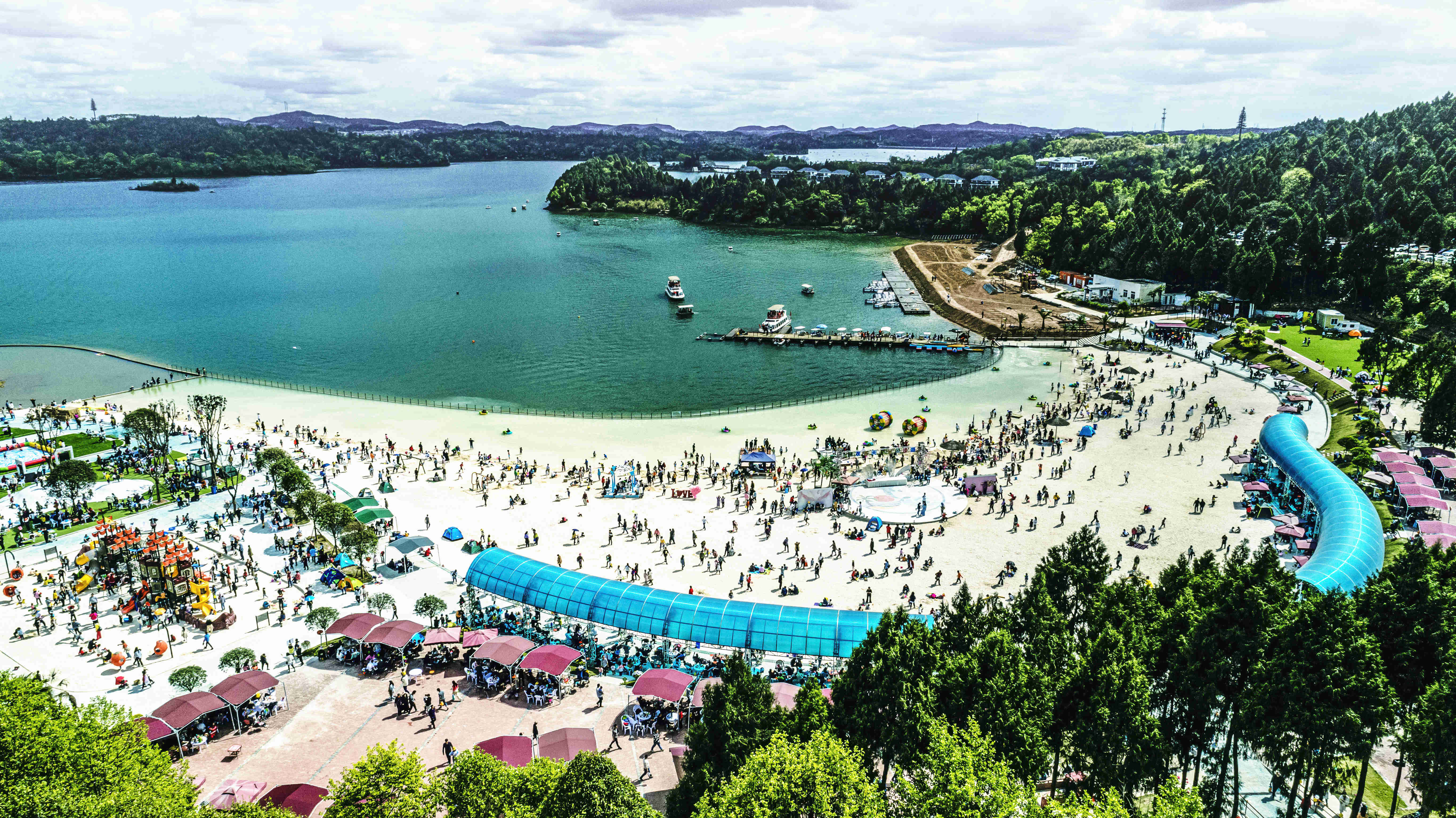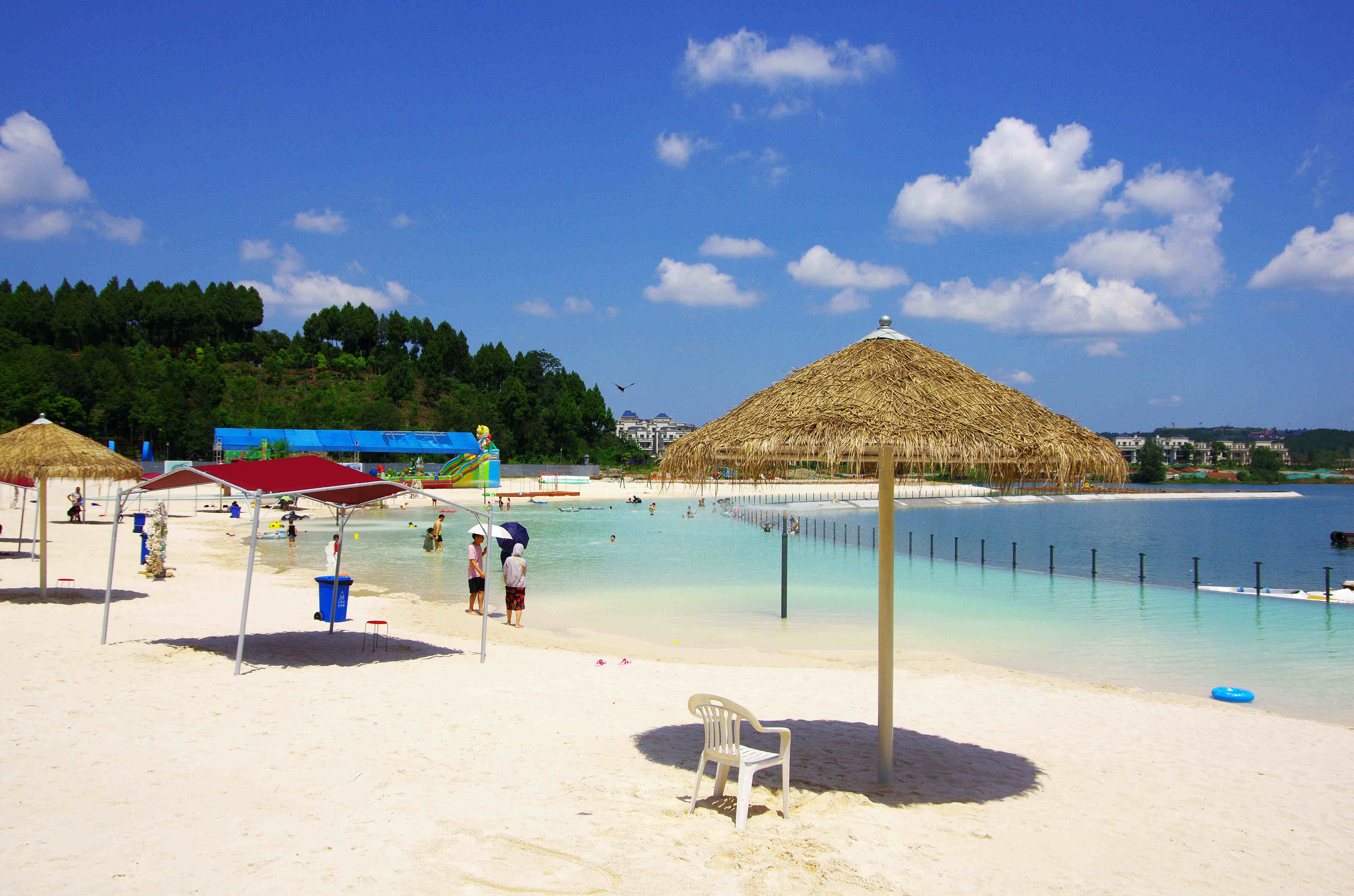 綿陽嘉成文化旅游有限公司是一家旅游開發(fā)公司,成立于2019年。 親水灣沙灘樂園項目由綿陽嘉成文化旅游有限公司開發(fā)運營,位于國家級水利風(fēng)景區(qū)——綿陽市仙海水利風(fēng)景區(qū),距綿陽市區(qū)15公里,車程約半個小時,是依托沉抗水庫建設(shè)的仙海風(fēng)景區(qū)重點旅游項目。進入仙海風(fēng)景區(qū)上坡向左進入環(huán)湖路前行1000米。項目總占地220畝,其中核心沙灘樂園占地100畝,現(xiàn)建成沙灘休閑、淺灘嬉水、水上運動,親子蹦蹦云、網(wǎng)紅多人秋千、人力過山車、水幕秋千、團隊拓展等項目十余個,還開設(shè)有特色中餐、仙海火鍋魚,自助燒烤等飲食項目。 近觀青山綠水,遠眺碧波蕩漾,清晨朝霞映翠、傍晚水天一色。親水灣沙灘主題樂園有可容納200人的沙灘會議室和30人的小型會議室;棋牌室16間; 商務(wù)KTV;餐飲中心可同時容納300人用餐;篝火晚會場地等,是婚禮壽宴、同學(xué)聚會、餐飲娛樂、商務(wù)會議、拓展培訓(xùn)、家庭親子活動的首選之地。